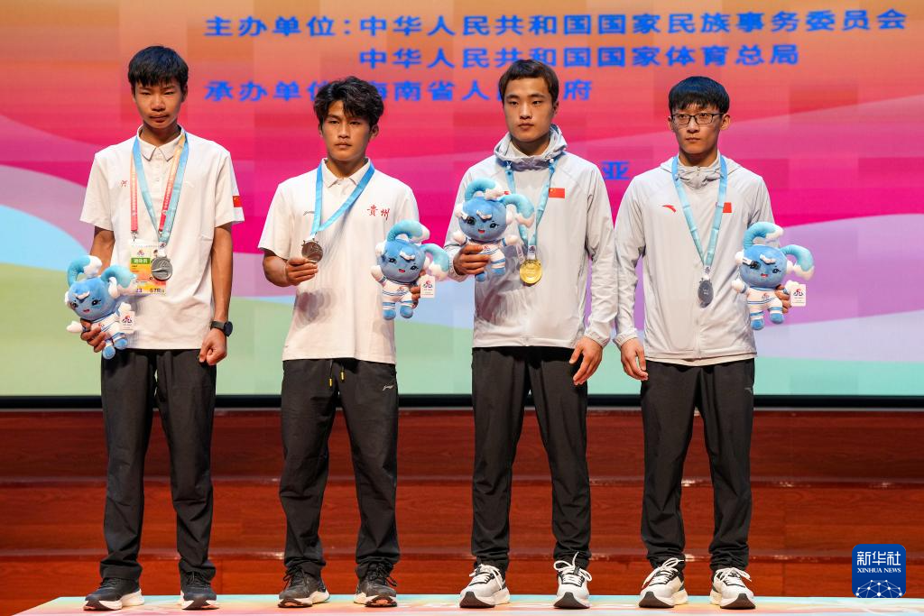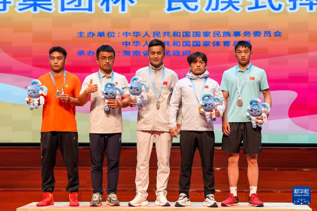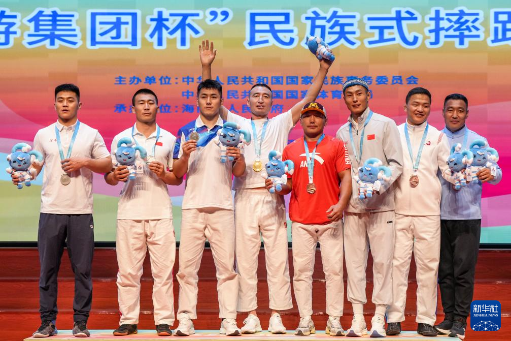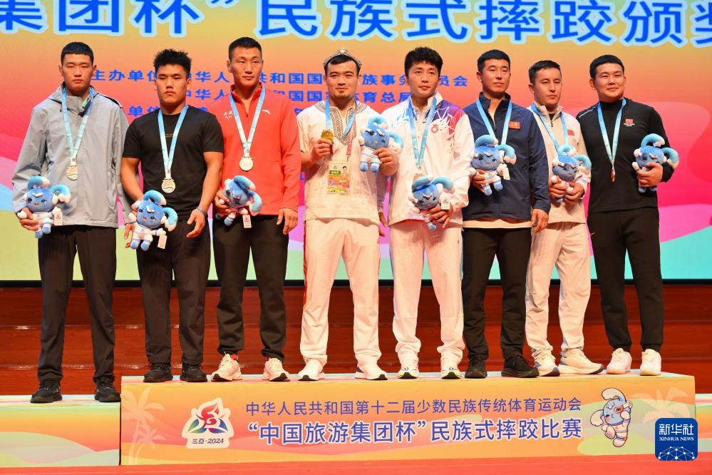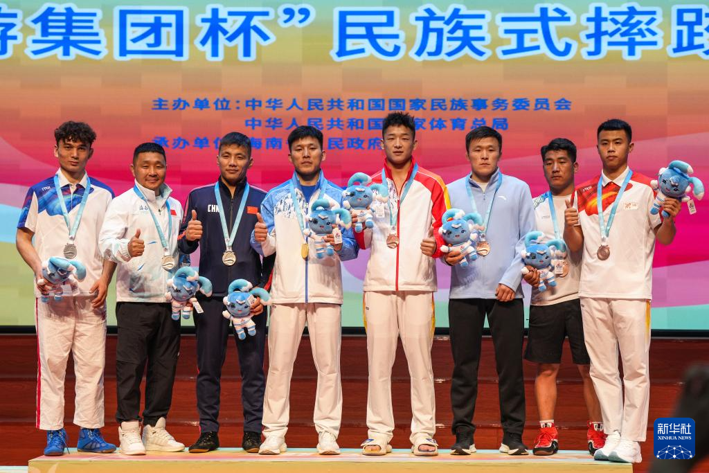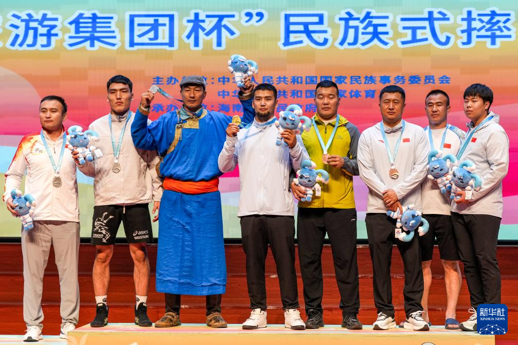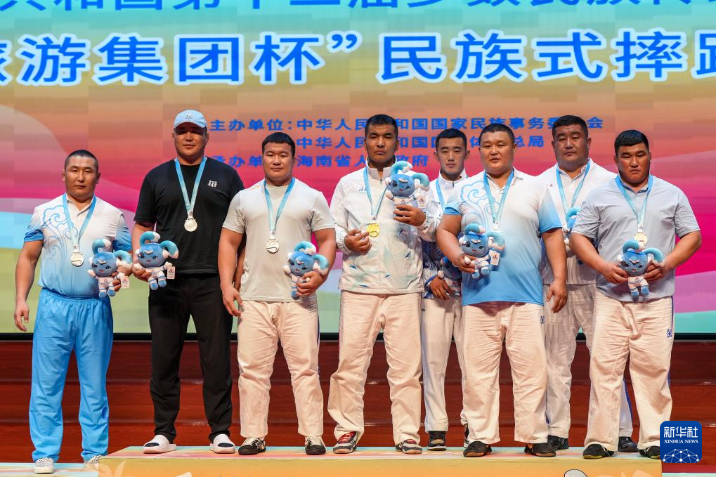 当日,第十二届全国少数民族传统体育运动会民族式摔跤项目颁奖仪式在海南省三亚市举行。