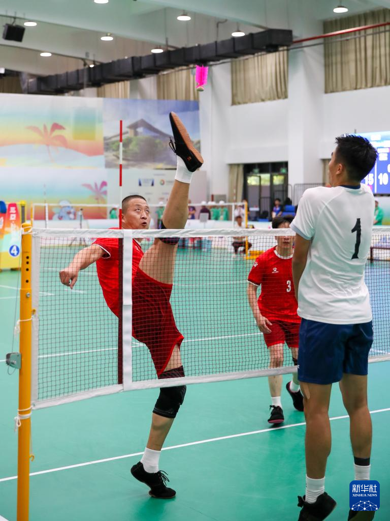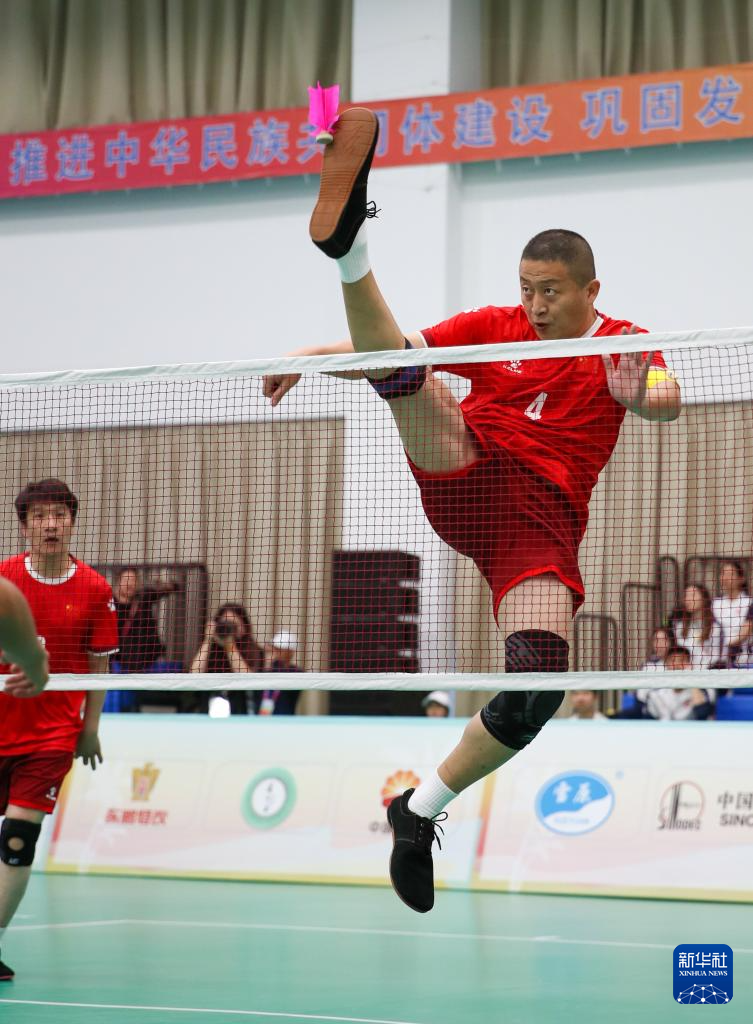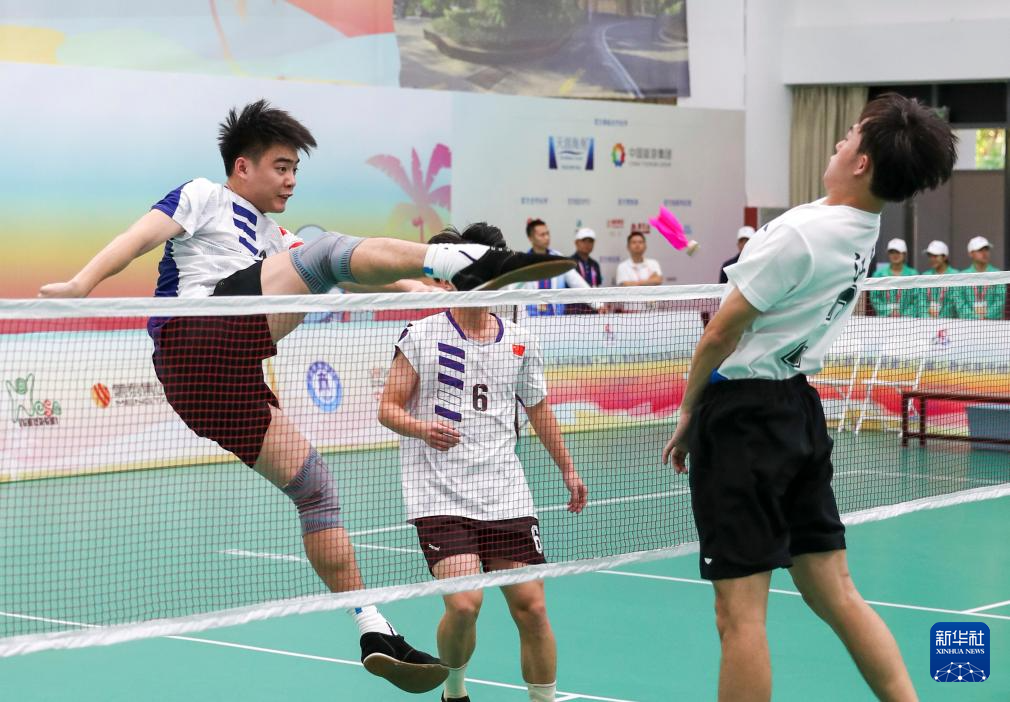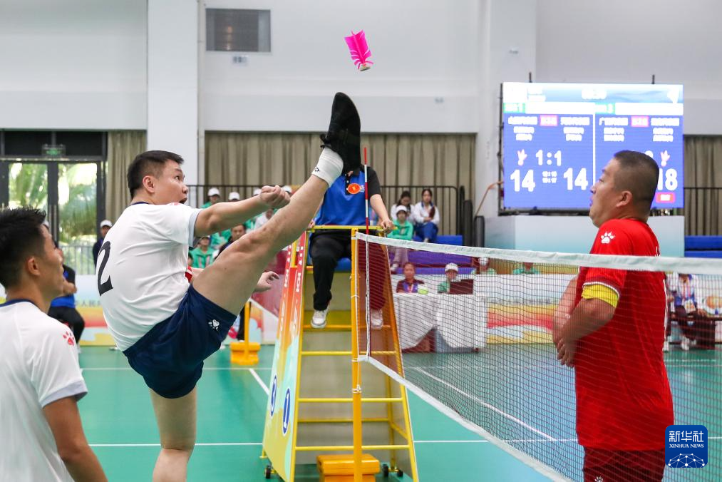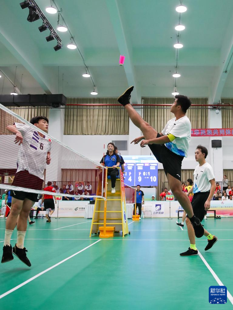 当日,第十二届全国少数民族传统体育运动会毽球项目男子双人赛半决赛在海南三亚中瑞酒店管理学院举行。
