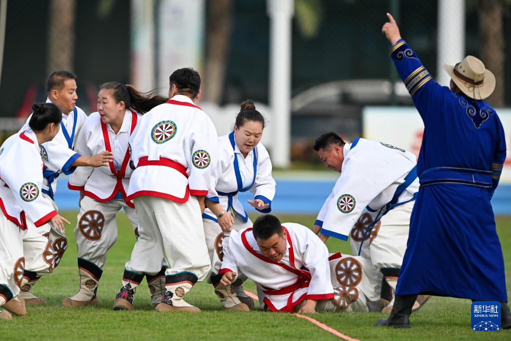 当日,第十二届全国少数民族传统体育运动会表演项目(室外)第二轮次第十组比赛在海南省三亚市举行。