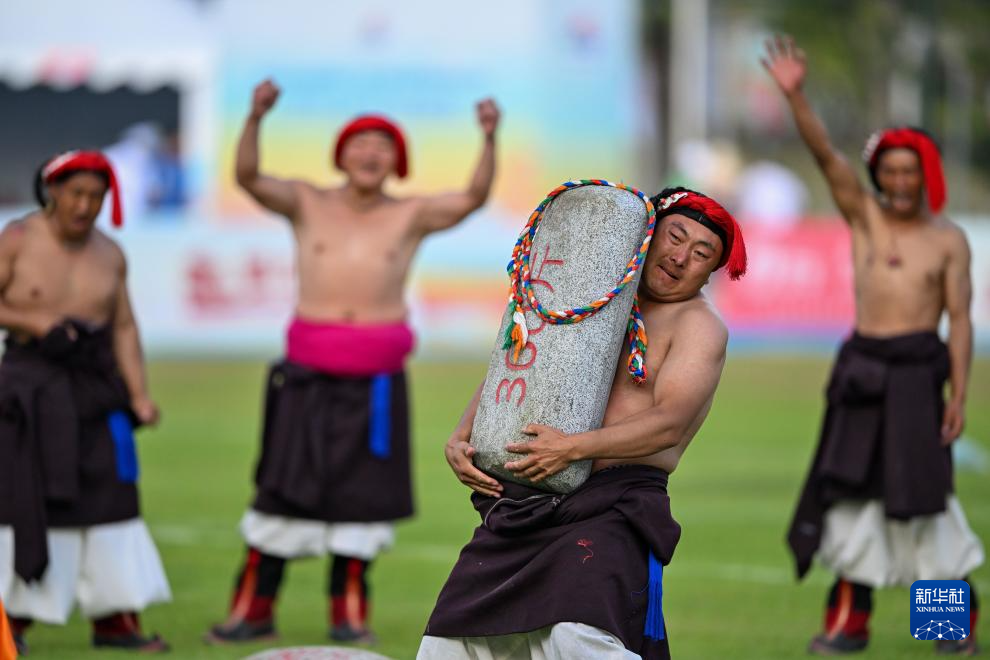 11月27日,西藏队选手表演抱石头。