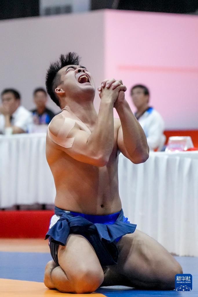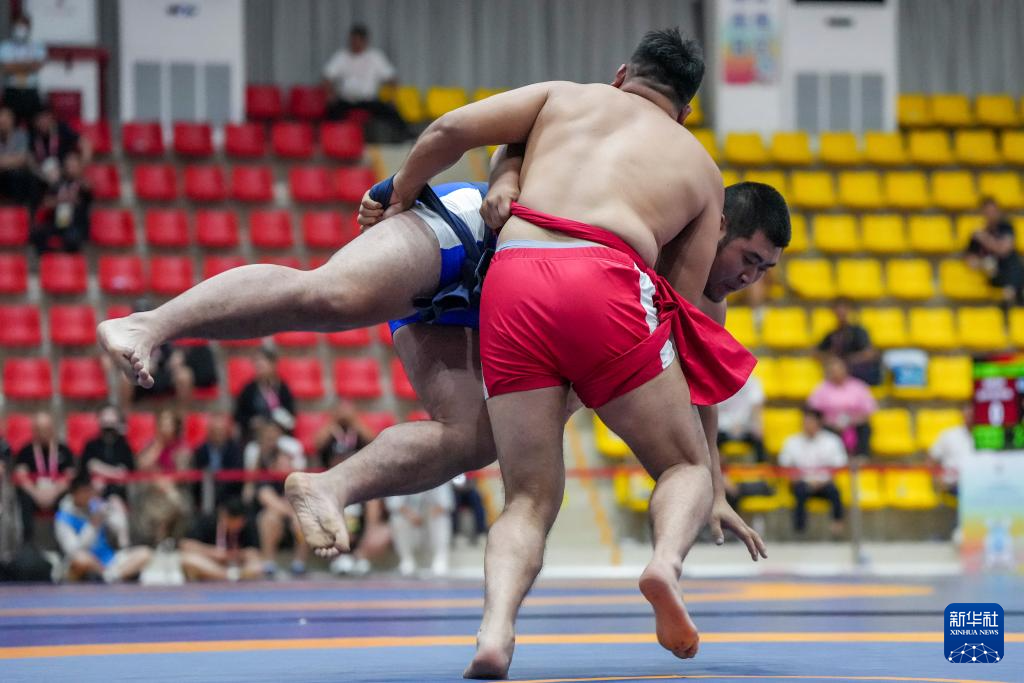 当日,第十二届全国少数民族传统体育运动会民族式摔跤希日木决赛在海南省三亚市举行。