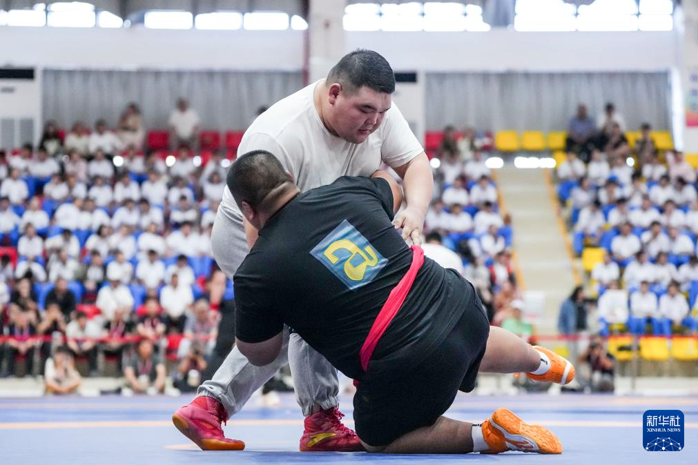 当日,第十二届全国少数民族传统体育运动会民族式摔跤北嘎(藏族式摔跤)半决赛在海南省三亚市举行。