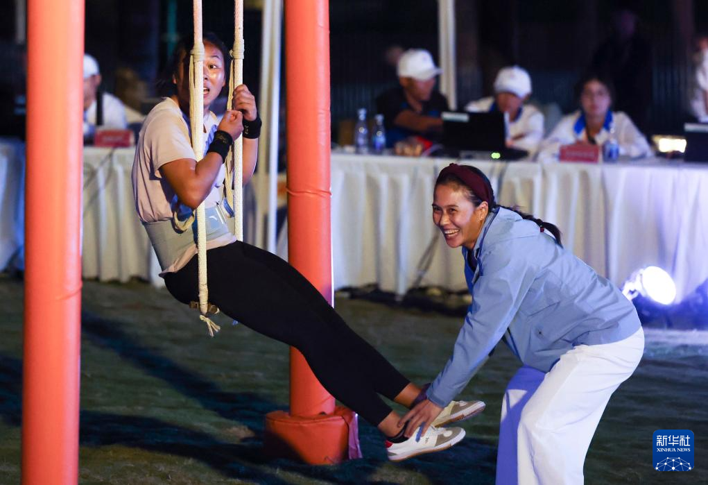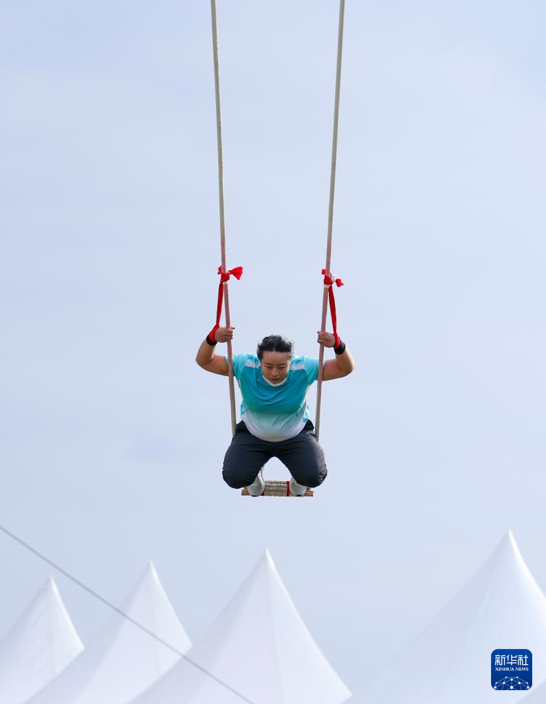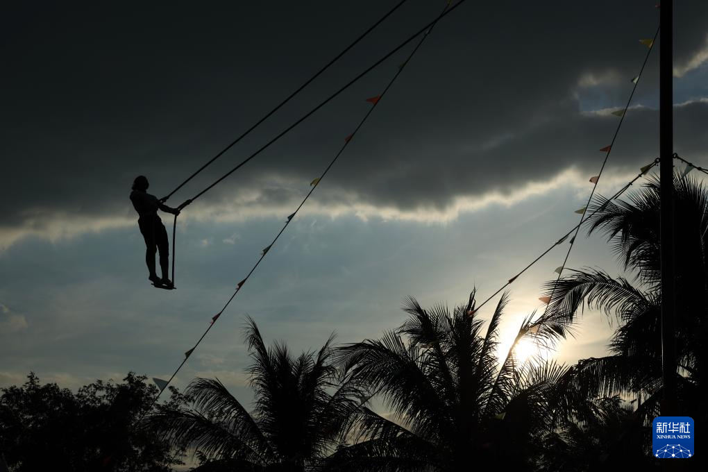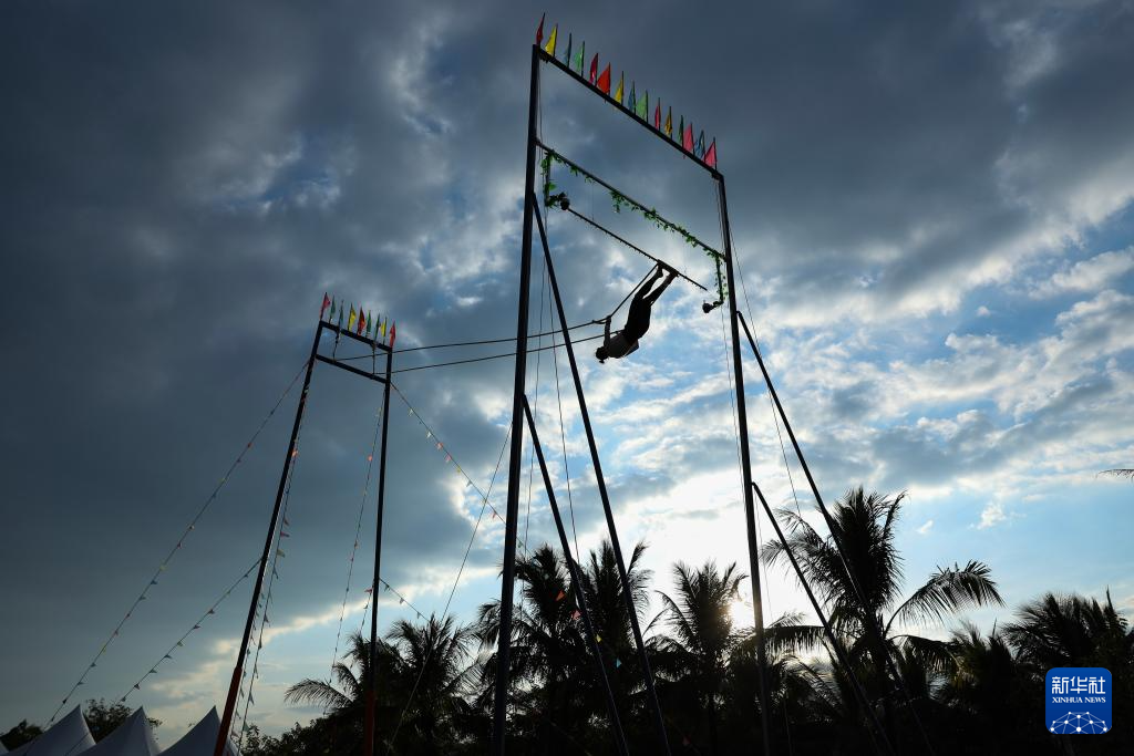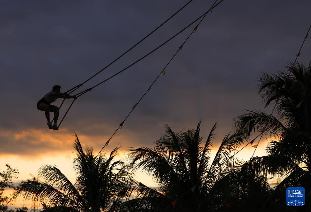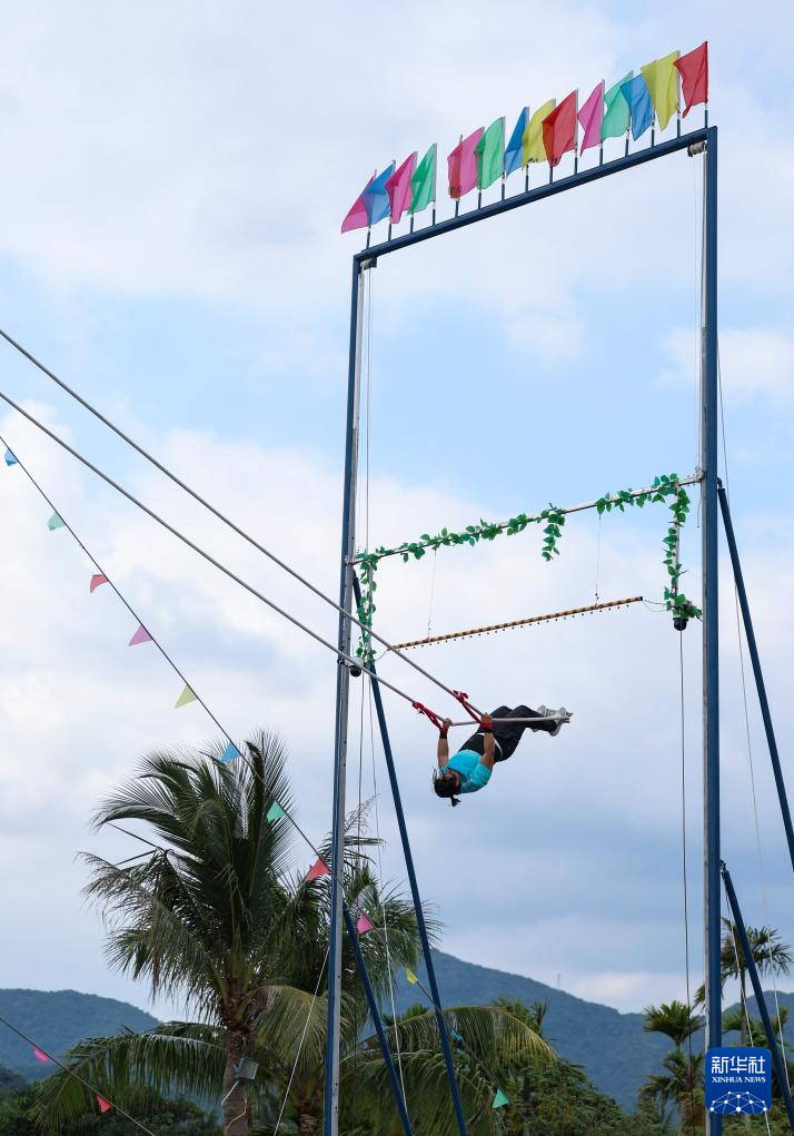 当日,第十二届全国少数民族传统体育运动会秋千项目55公斤以上单人高度决赛在海南三亚大茅远洋生态村举行。