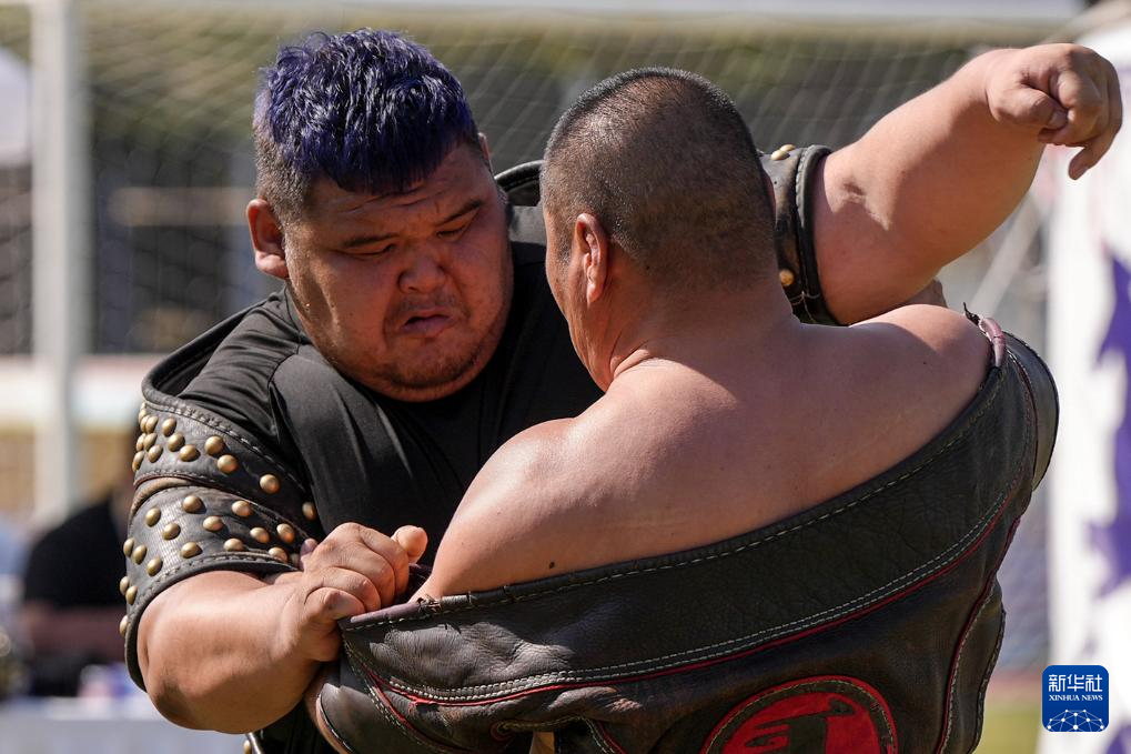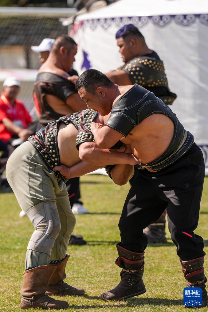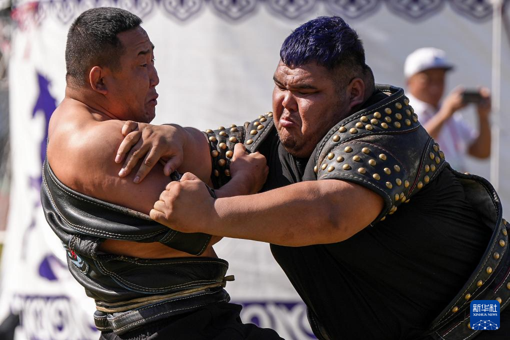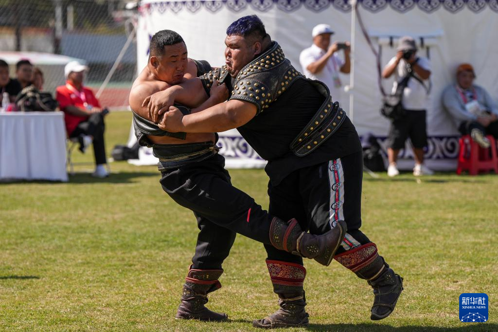 11月28日,上海队选手套力(左)和内蒙古队选手斯恩格嘎日布在比赛中。