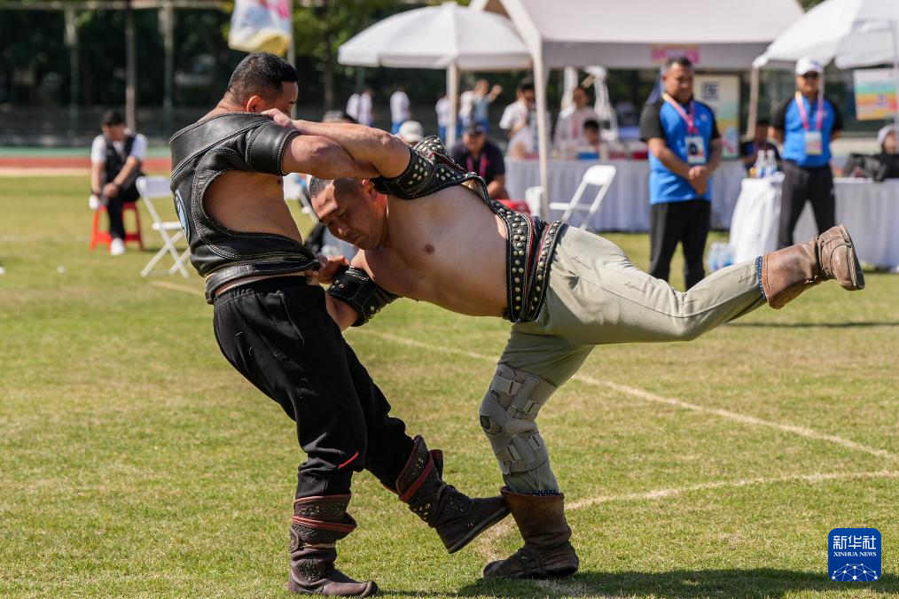 11月28日,内蒙古队选手查那(右)和上海队选手套力在比赛中。