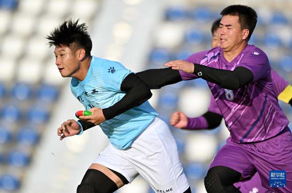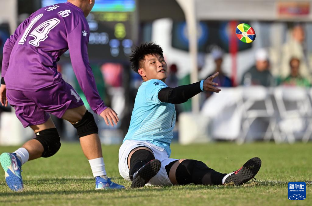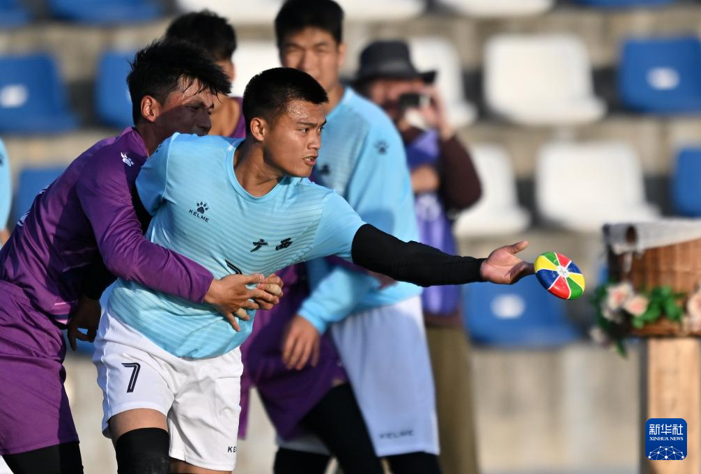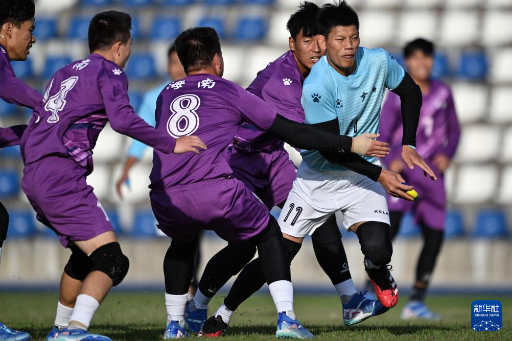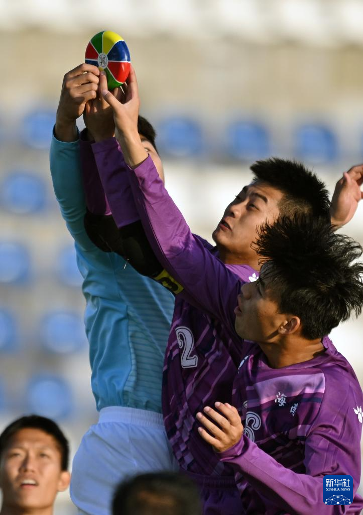 11月28日,海南队选手朱玉坤(中)在比赛中争抢花炮。