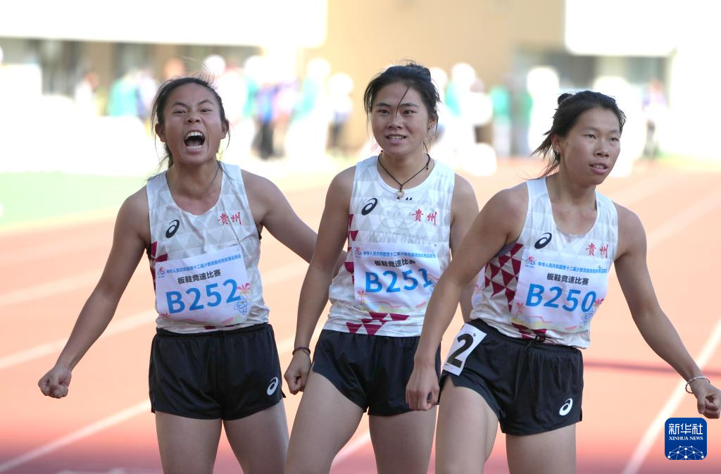 当日,第十二届全国少数民族传统体育运动会板鞋竞速女子100米决赛在海南省三亚市举行。