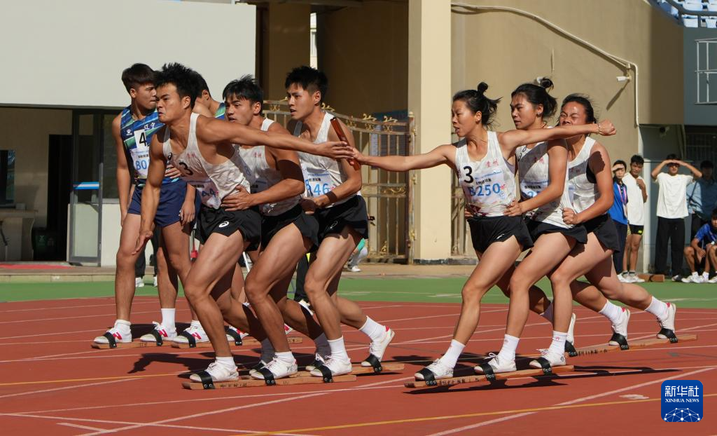 当日,第十二届全国少数民族传统体育运动会板鞋竞速4X100米混合接力决赛在海南三亚举行。贵州队获得一等奖。