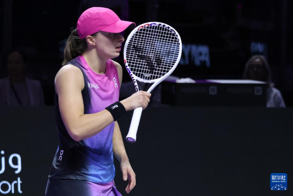 11月3日,斯维亚特克在比赛中。当日,在沙特阿拉伯利雅得进行的WTA年终总决赛小组赛中,波兰选手斯维亚特克2:1战胜捷克选手克赖奇科娃。新华社记者 罗晨 摄