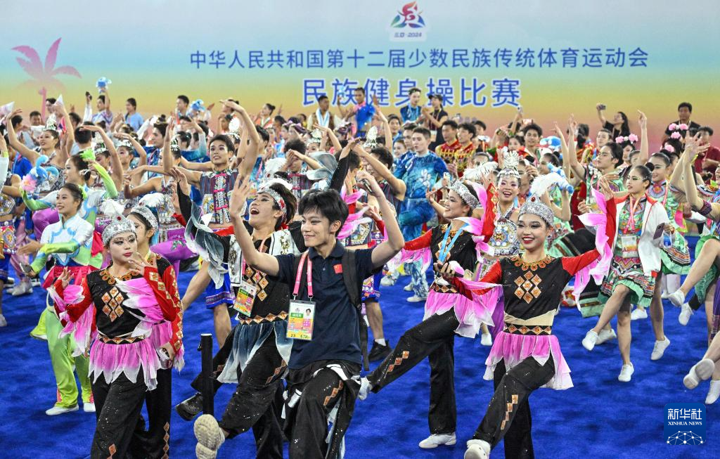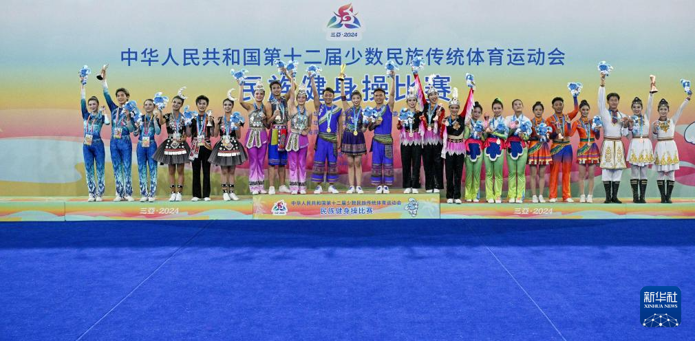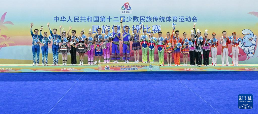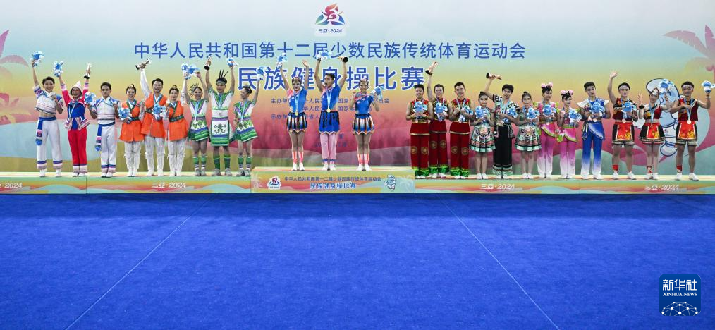 当日,在西南大学三亚中学体育馆举行的第十二届全国少数民族传统体育运动会民族健身操项目比赛全部结束。