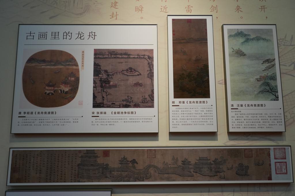 “龙是中原的一种文化图腾,舟常见于我国南方,从古至今,龙舟活动逐渐在中原和少数民族地区流行开来。”中国民族博物馆一名藏族馆员丹珍央金讲解道。她引导看向展厅里“古画里的龙舟”,一艘巨大的龙舟正从春秋战国时期的烟波浩渺中劈波斩浪而来。