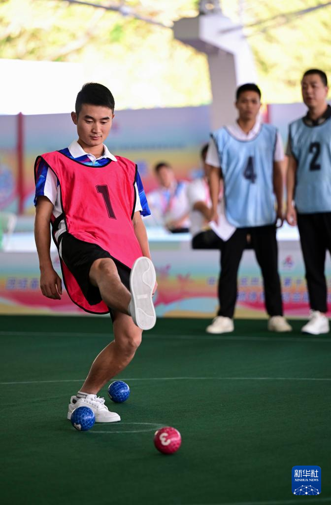 当日,在海南三亚举行的第十二届全国少数民族传统体育运动会蹴球男子双蹴决赛中,贵州队组合胡家卫/胡光吉100比92战胜云南队组合张彦吉/张永福,获得一等奖。