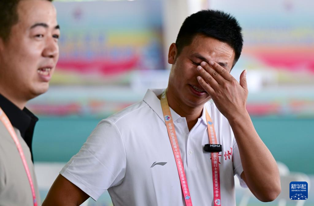 11月29日,贵州队选手胡家卫(右)获得一等奖后激动落泪。
