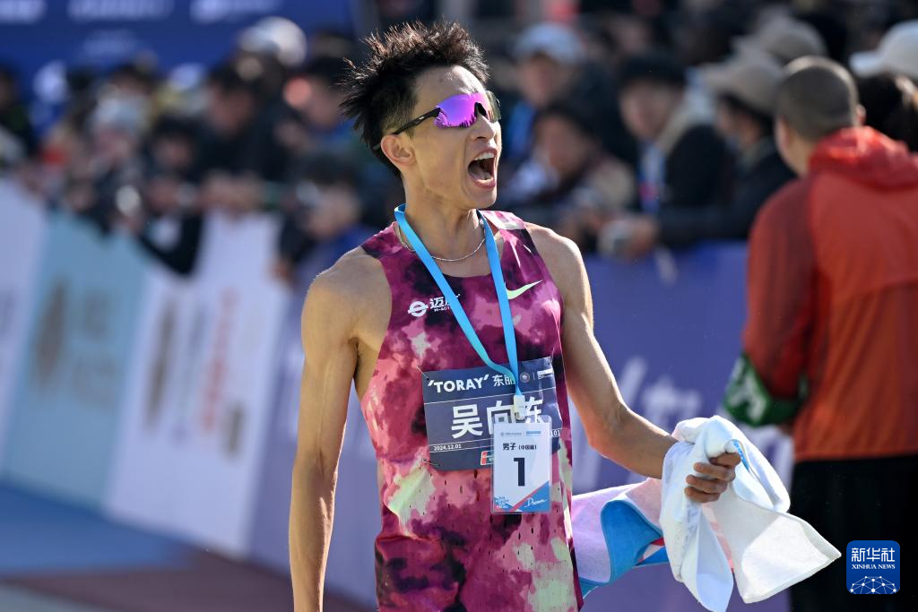 12月1日,中国选手吴向东在比赛后。最终,他获得中国籍男子组冠军。