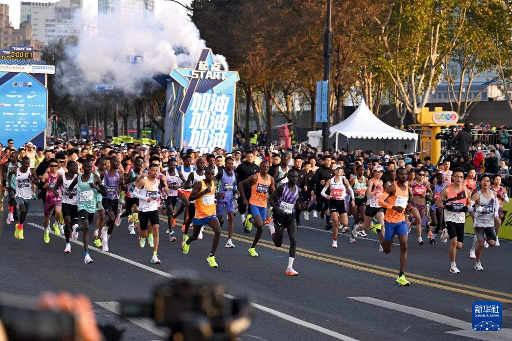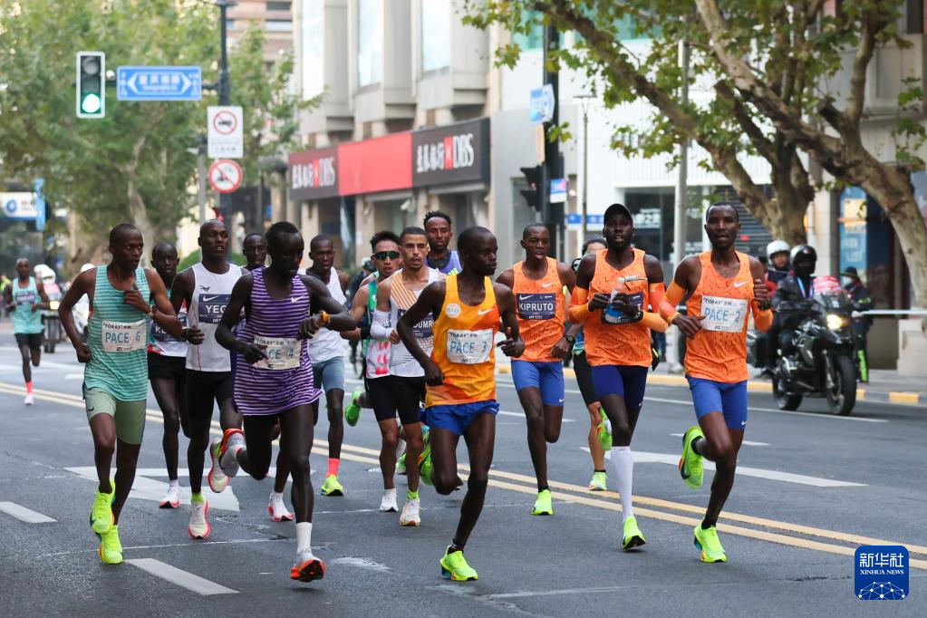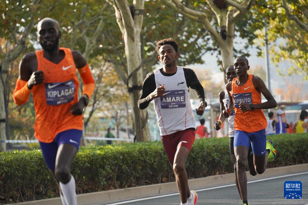 12月1日,厄立特里亚选手阿玛雷(左二)、肯尼亚选手基普鲁托(右一)在比赛中。最终,阿玛雷和基普鲁托分获男子组冠军、亚军。