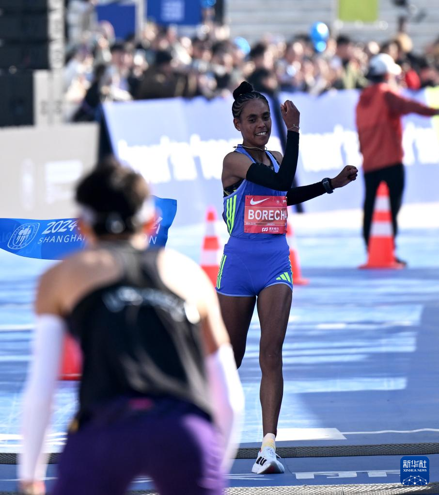 12月1日,埃塞俄比亚选手博雷查在比赛中冲线。她以2小时25分21秒的成绩获得女子组冠军。