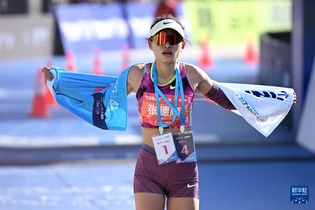 12月1日,中国选手张德顺在比赛后。最终,她获得中国籍女子组冠军。