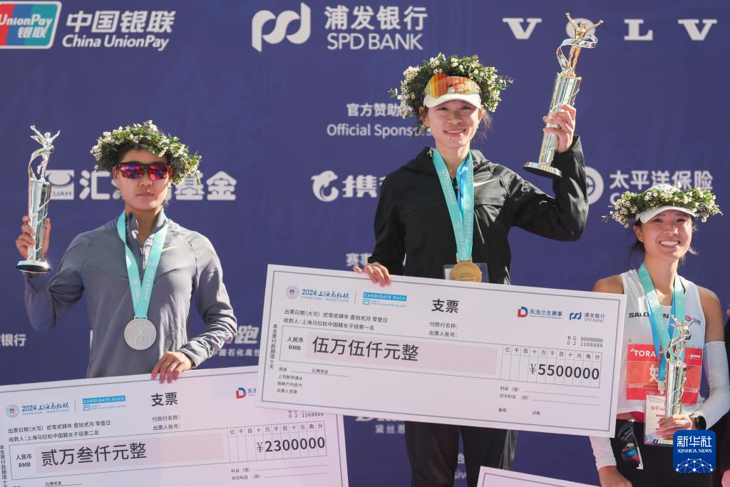 12月1日,冠军张德顺(中)、亚军张新艳(左)和季军姚妙在中国籍女子组颁奖仪式上。