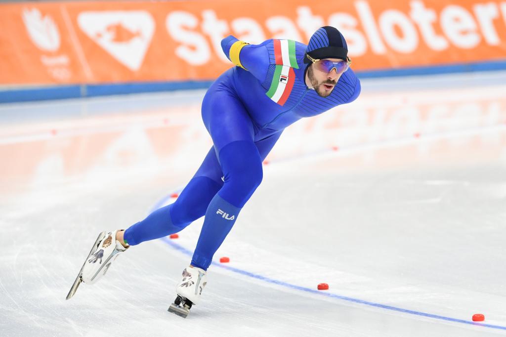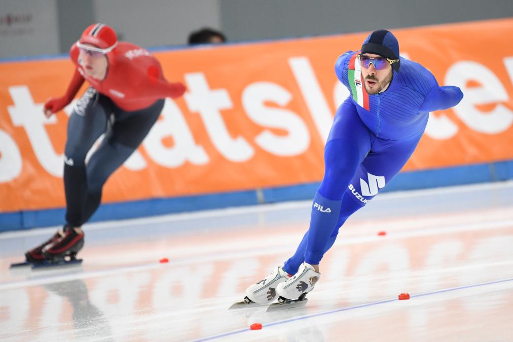 11月30日,意大利选手吉奥托在比赛中。他以6分10秒04的成绩获得银牌。
