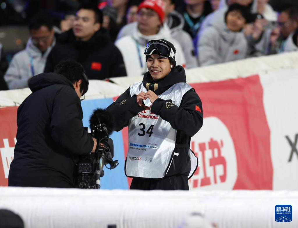 12月1日,中国选手苏翊鸣在第二跳后向观众致意。最终他获得第十名。