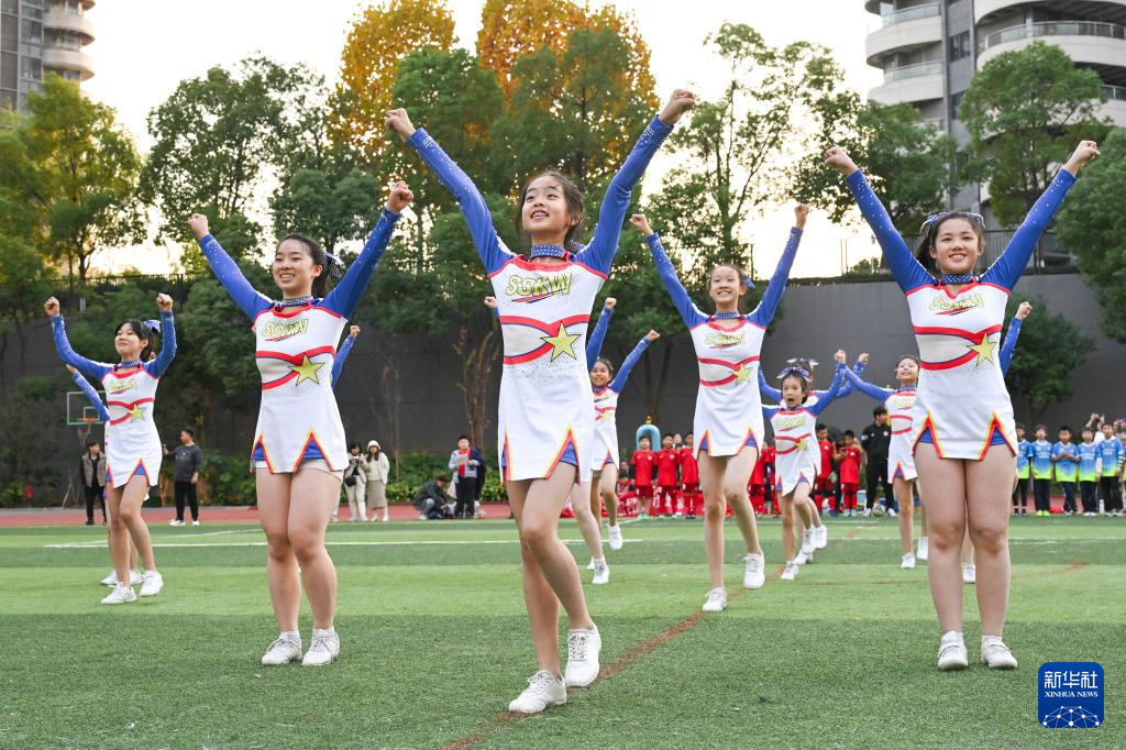 12月2日,湖北省武昌实验中学沙湖学校学生表演啦啦操。
