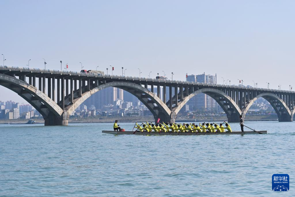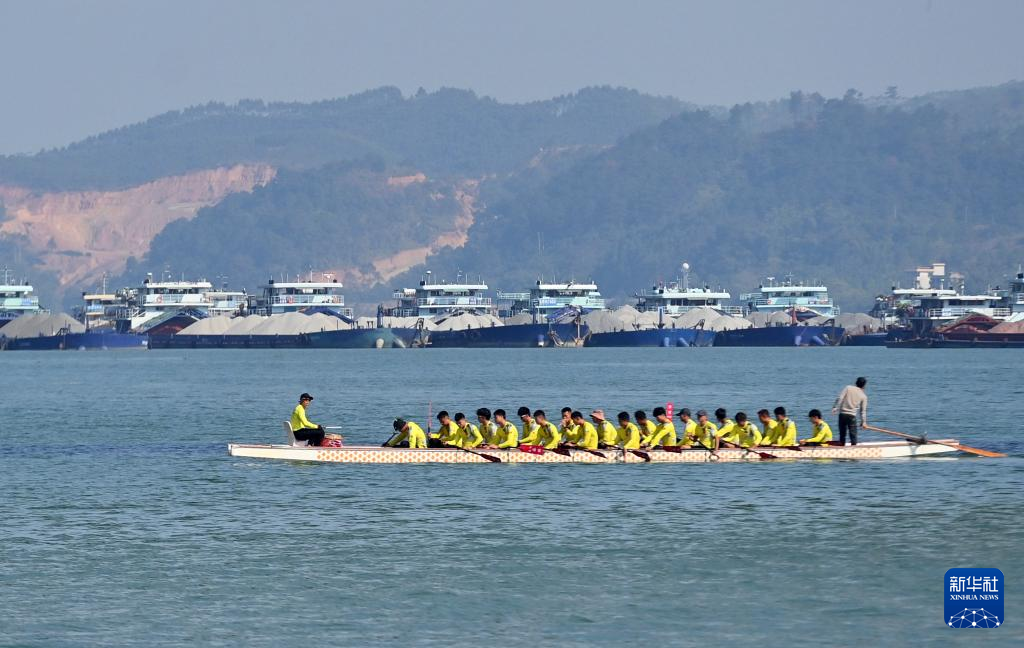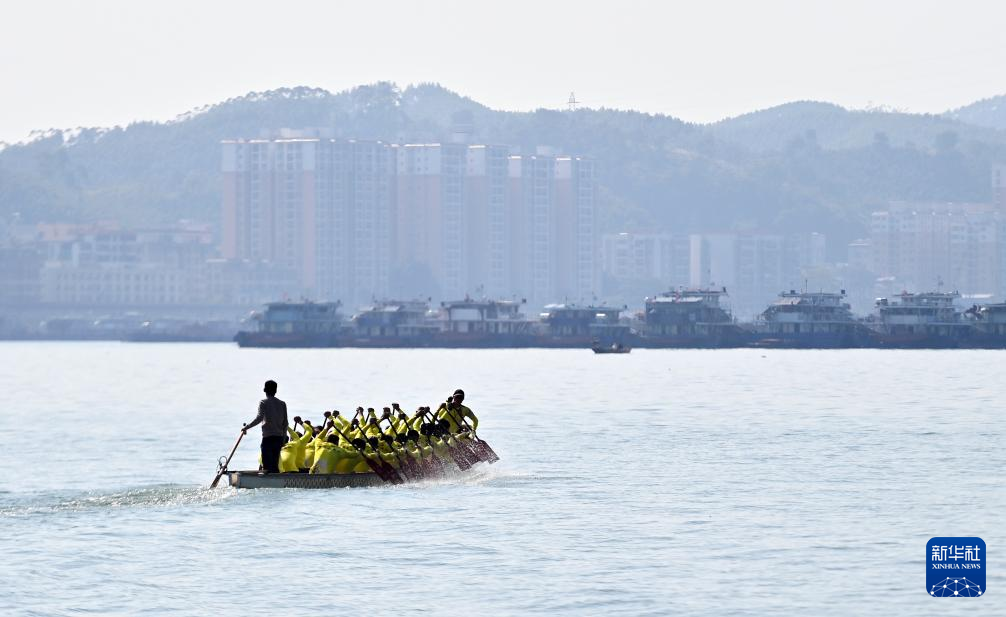 连日来,广西梧州市藤县龙舟队在西江广西藤县段开展训练和测试,备战即将在广东省佛山市举行的2024中国龙舟大奖赛。