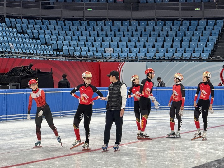 2023年12月10日,中国选手范可新在比赛前。当日,2023-2024赛季国际滑联短道速滑世界杯北京站女子500米第二场决赛在北京首都体育馆举行,范可新获得季军。新华社记者 陈钟昊 摄