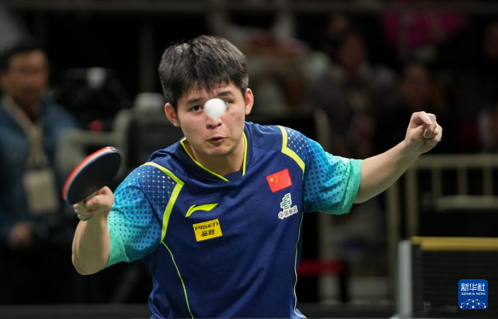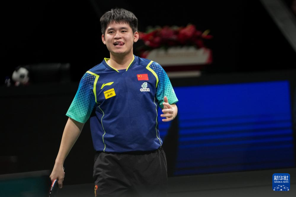 12月5日,中国队选手林诗栋在男单比赛中。最终他2比0战胜中国香港队选手陈颢桦。