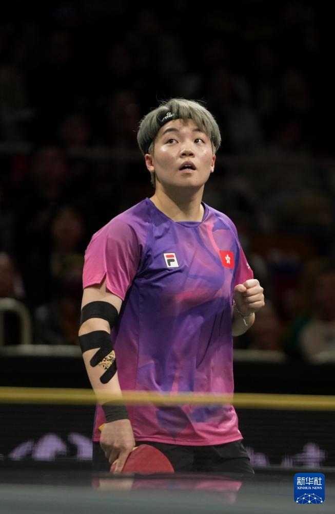 12月5日,中国队选手王曼昱在女单比赛中。最终她3比0战胜中国香港队选手杜凯琹。