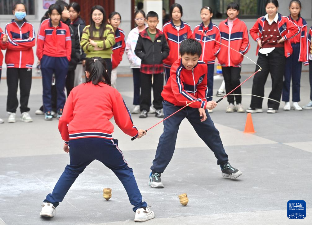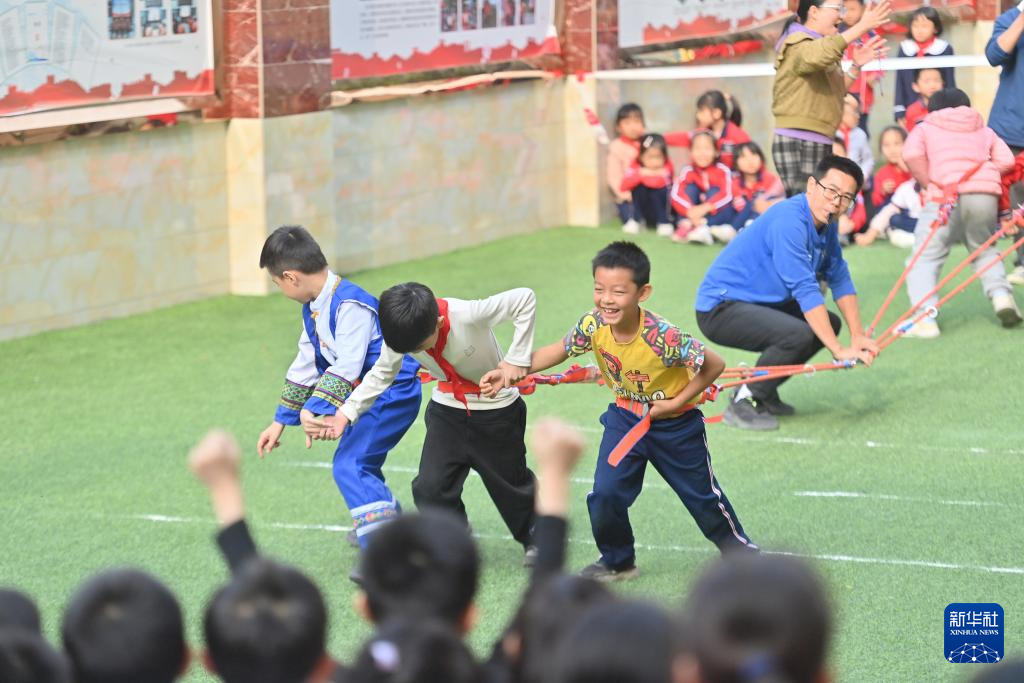 当日,广西梧州市新兴二路小学举行民族体育运动会,比赛设有抛绣球、大象拔河、陀螺、板鞋接力、竹竿舞、跳绳等十多个项目。学生们在运动会中尽享民族传统体育运动带来的快乐。