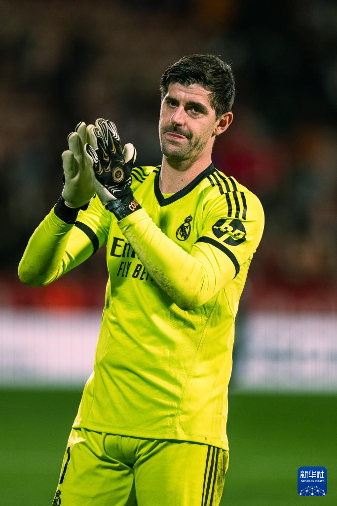 12月7日,皇家马德里队守门员库尔图瓦在赛后庆祝胜利。