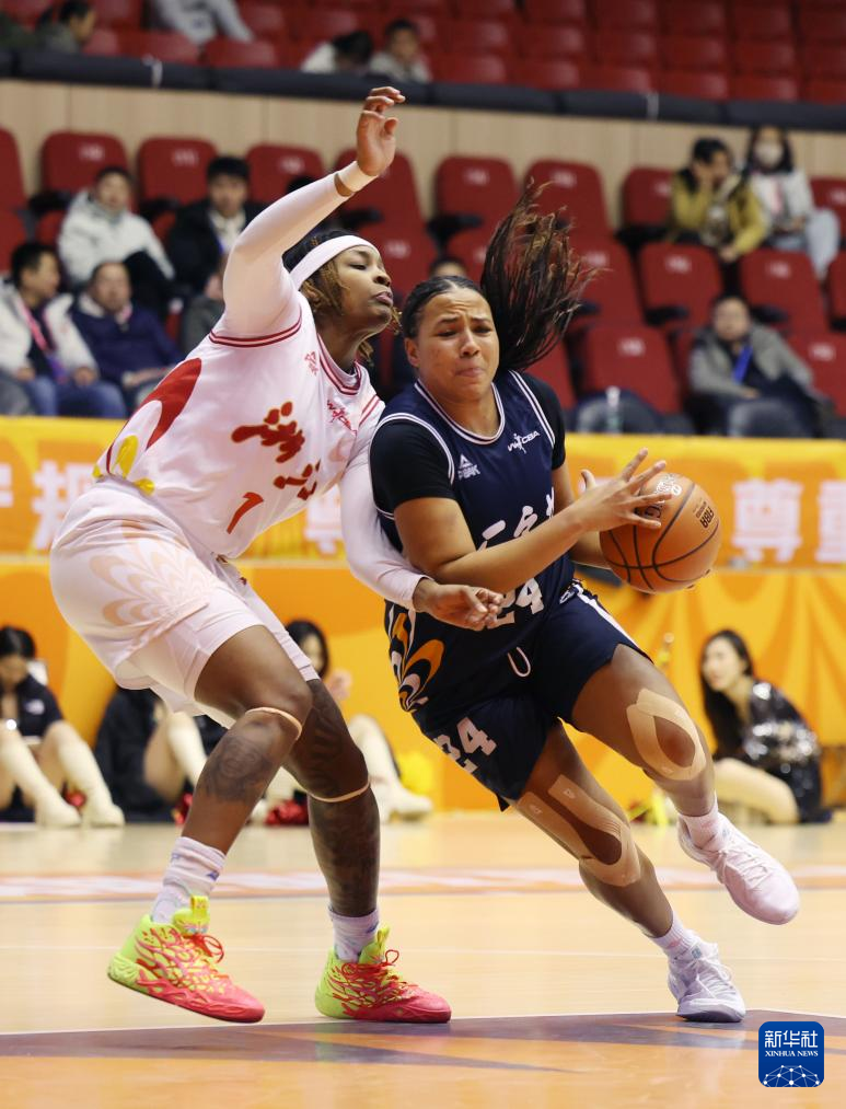 12月8日,石家庄英励队球员黛丝特尼·利托顿(右)在比赛中带球进攻。