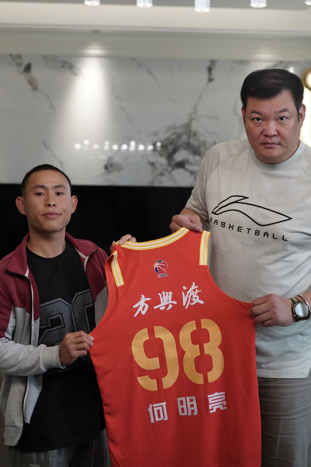 何明亮的坚强,感动了很多人,其中也包括浙江广厦篮球俱乐部。在和吉林队比赛当天,广厦俱乐部与何明亮签订了“CBA球员一日合同”,并赠予他一件印有自己名字的98号专属球衣。