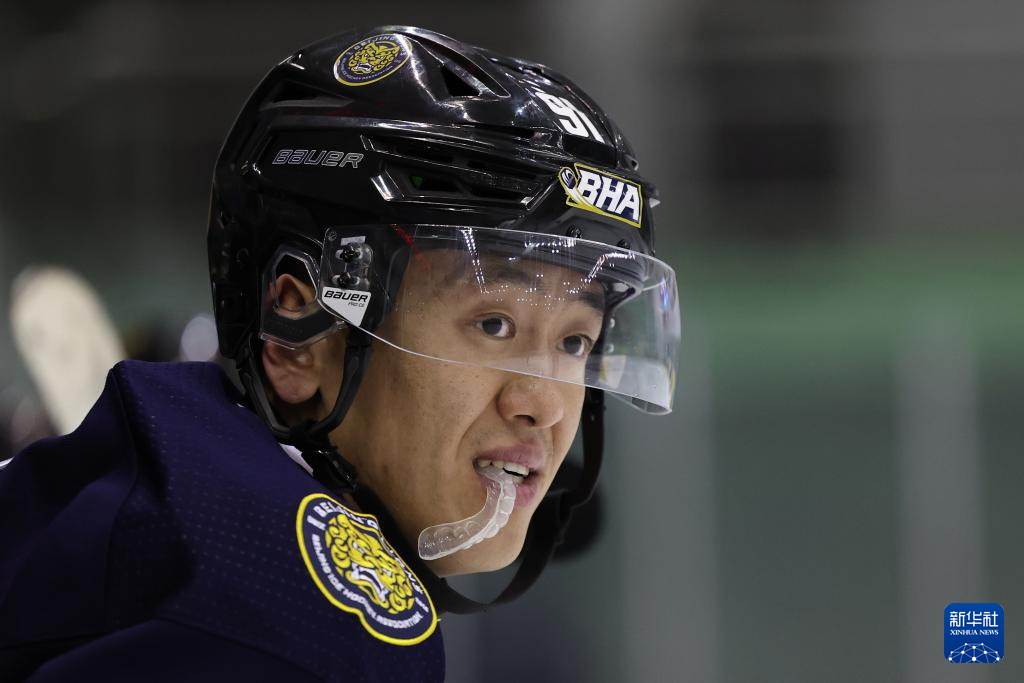 12月8日,北京京狮男子冰球队球员王京在比赛中。