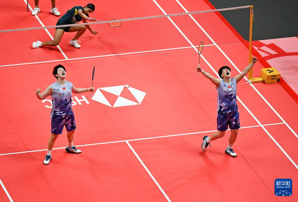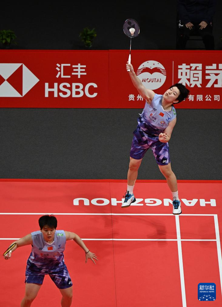 当日,在杭州举行的2024世界羽联世界巡回赛总决赛女双小组赛A组比赛中,中国组合刘圣书/谭宁2比1战胜印度组合乔莉/普莱拉。