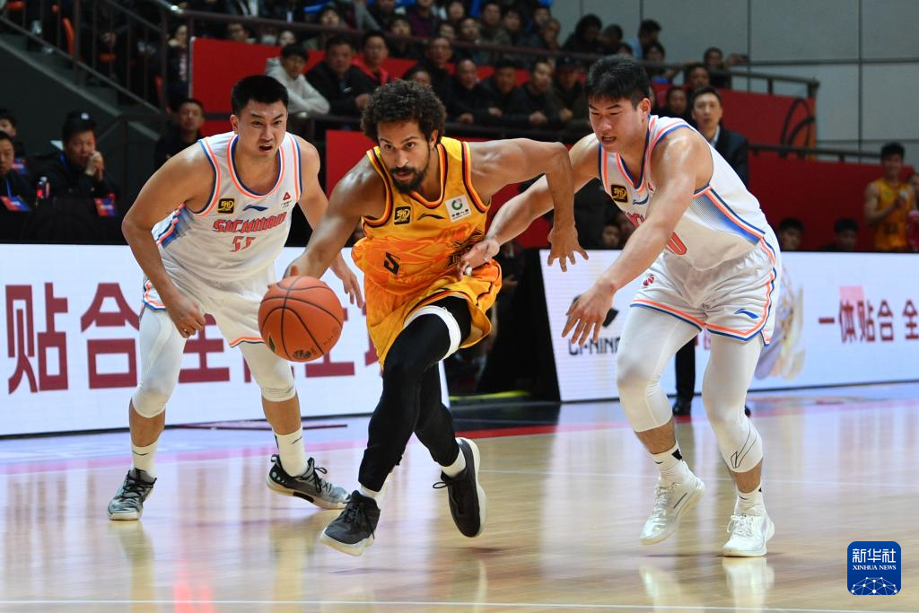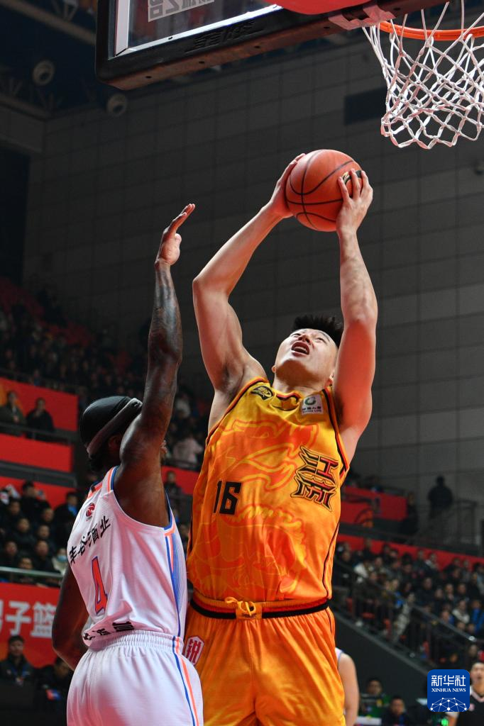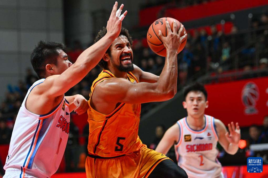 12月11日,四川丰谷酒业队球员马里奇(右)在比赛中上篮。