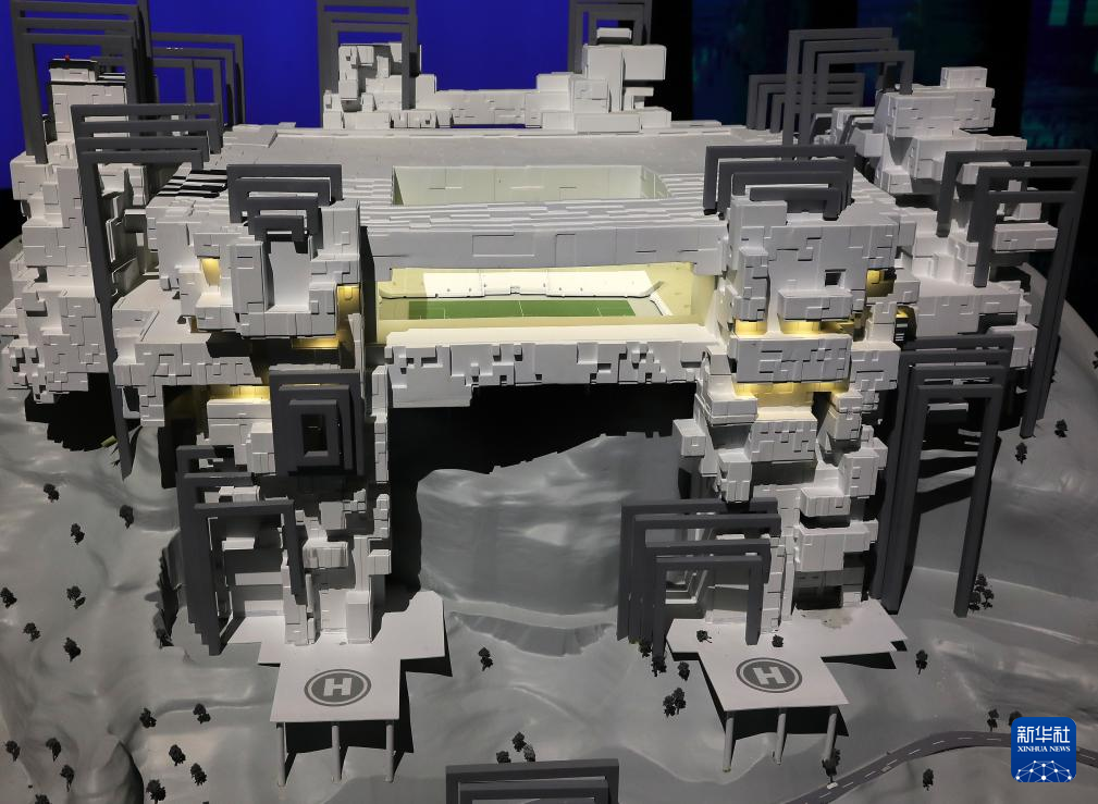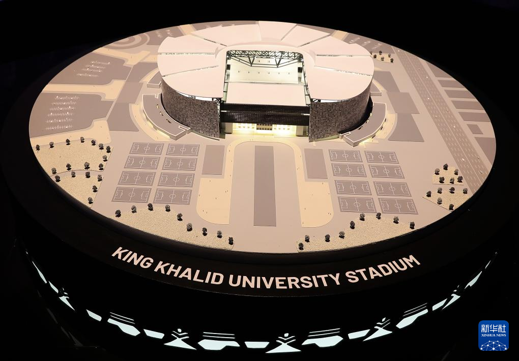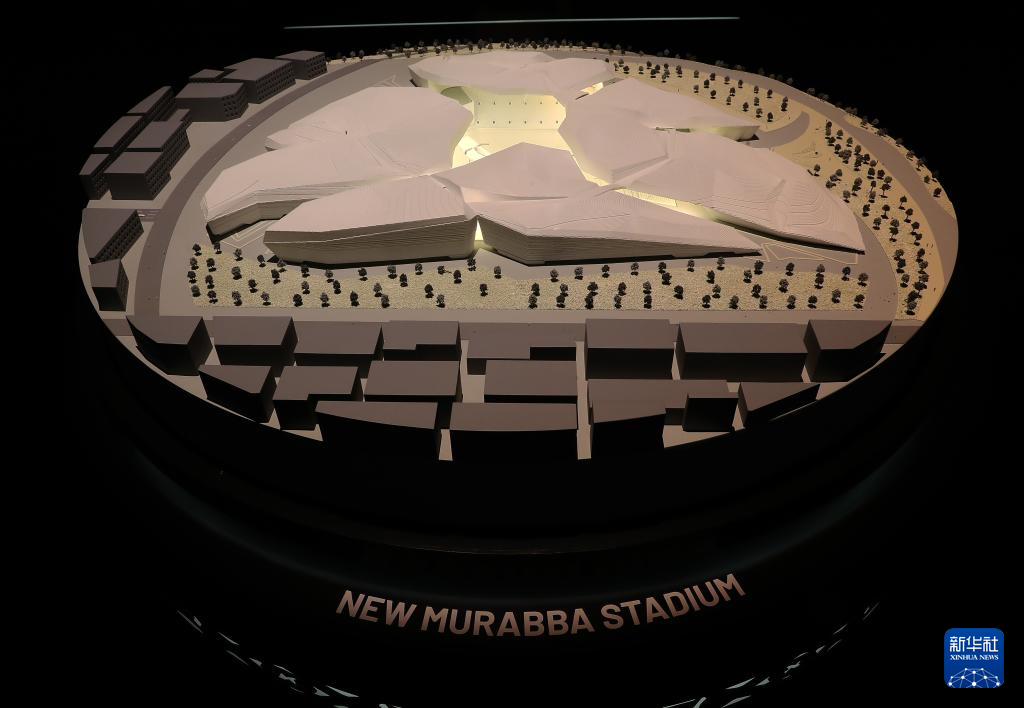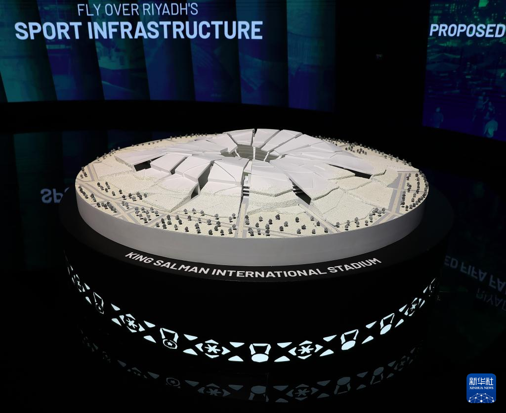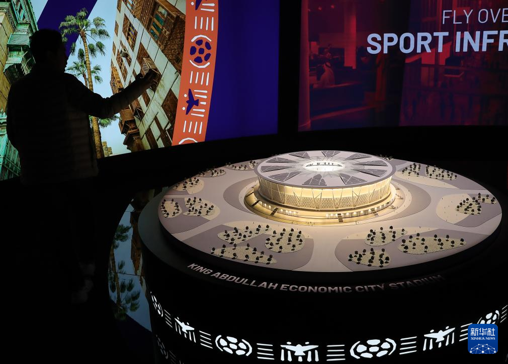 这是在沙特阿拉伯首都利雅得举办的2034年FIFA世界杯申办展览上拍摄的新穆拉巴体育场模型(12月11日摄)。