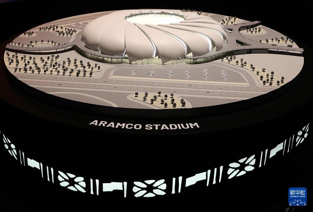 这是在沙特阿拉伯首都利雅得举办的2034年FIFA世界杯申办展览上拍摄的阿美体育场模型(12月11日摄)。