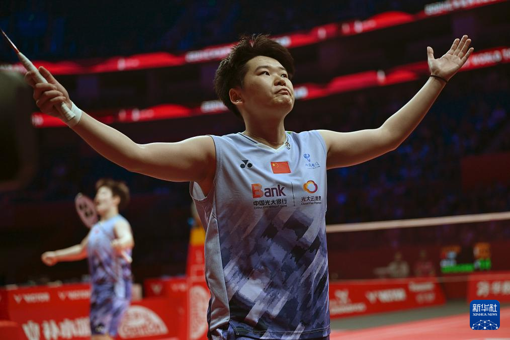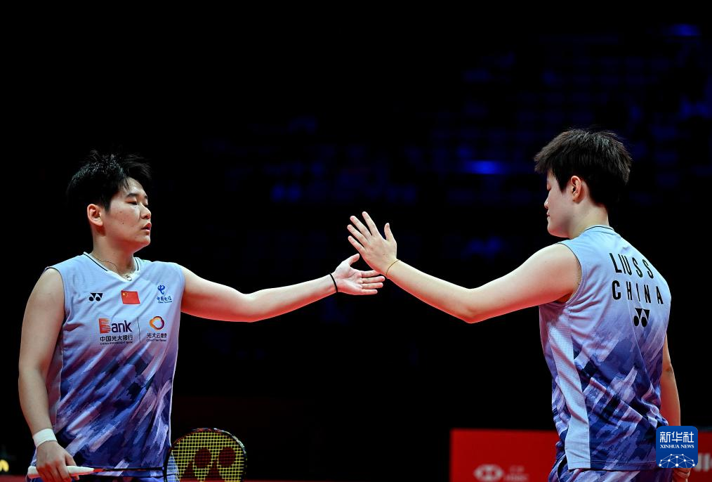 12月12日,刘圣书/谭宁(左)在比赛中庆祝得分。
