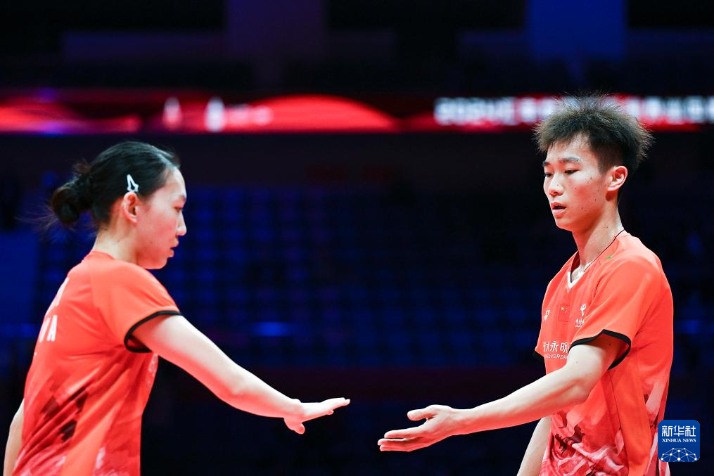12月11日,蒋振邦(右)/魏雅欣在比赛中。
