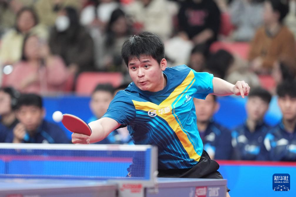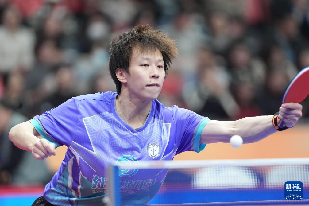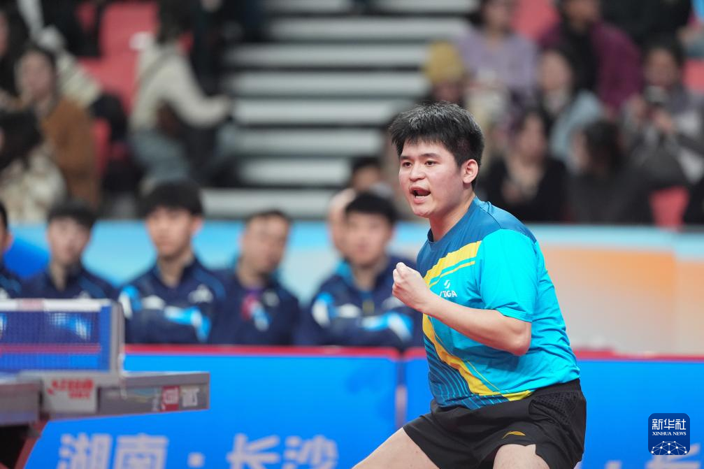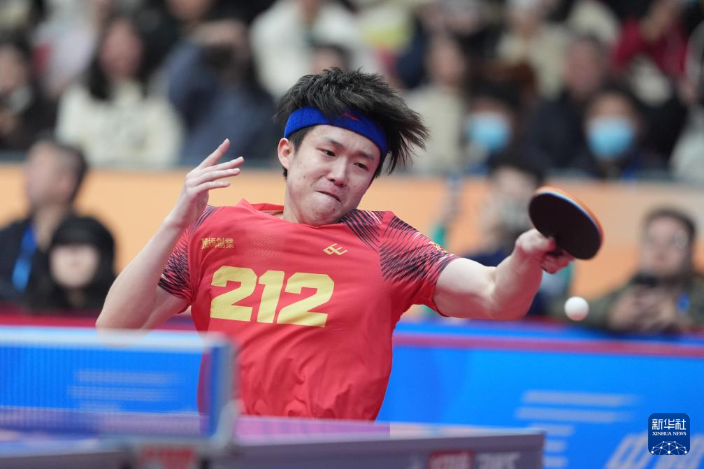 12月12日,黄石基地·华新队选手林诗栋在男子团体比赛中。最终,黄石基地·华新队3比1战胜石家庄尚体队。