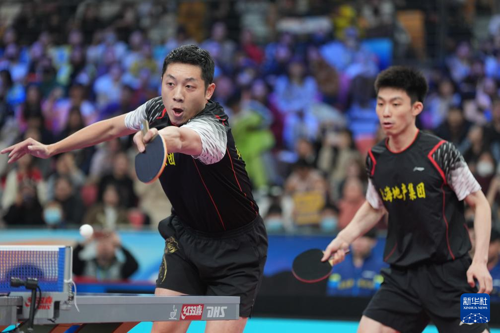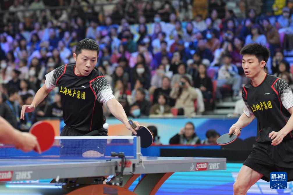 12月12日,上海地产集团队选手许昕(左)/周恺在男子团体比赛中。最终,上海地产集团队3比0战胜深圳宝安明金海队。