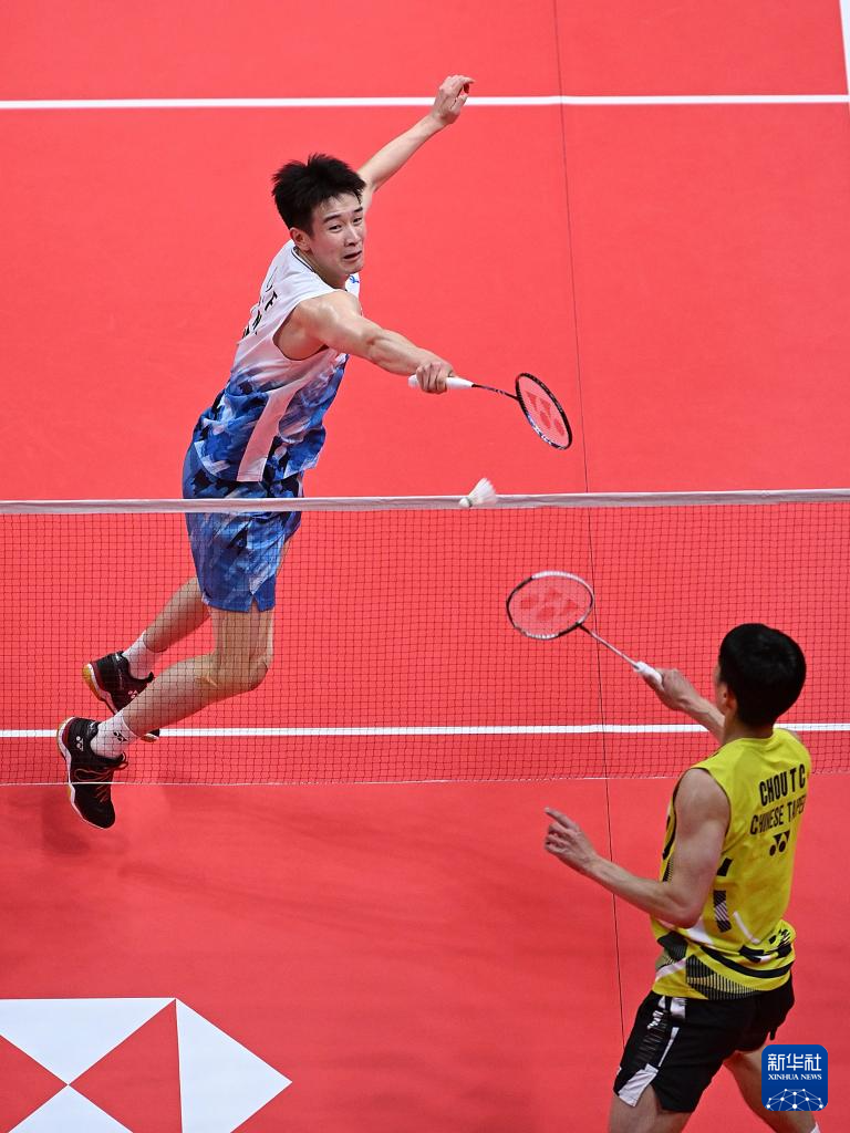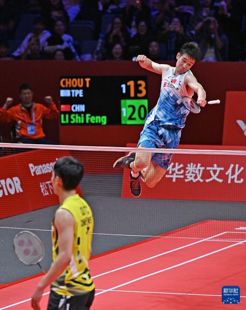 当日,在杭州举行的2024世界羽联世界巡回赛总决赛男单小组赛A组比赛中,中国选手李诗沣2比1战胜中国台北选手周天成。