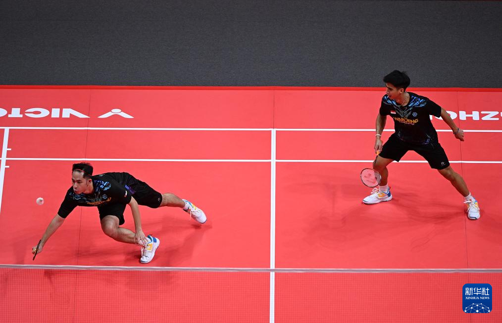 当日,在杭州举行的2024世界羽联世界巡回赛总决赛男双小组赛B组比赛中,中国组合何济霆/任翔宇0比2不敌印度尼西亚组合咖塔曼/伊斯法哈尼。