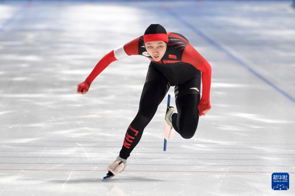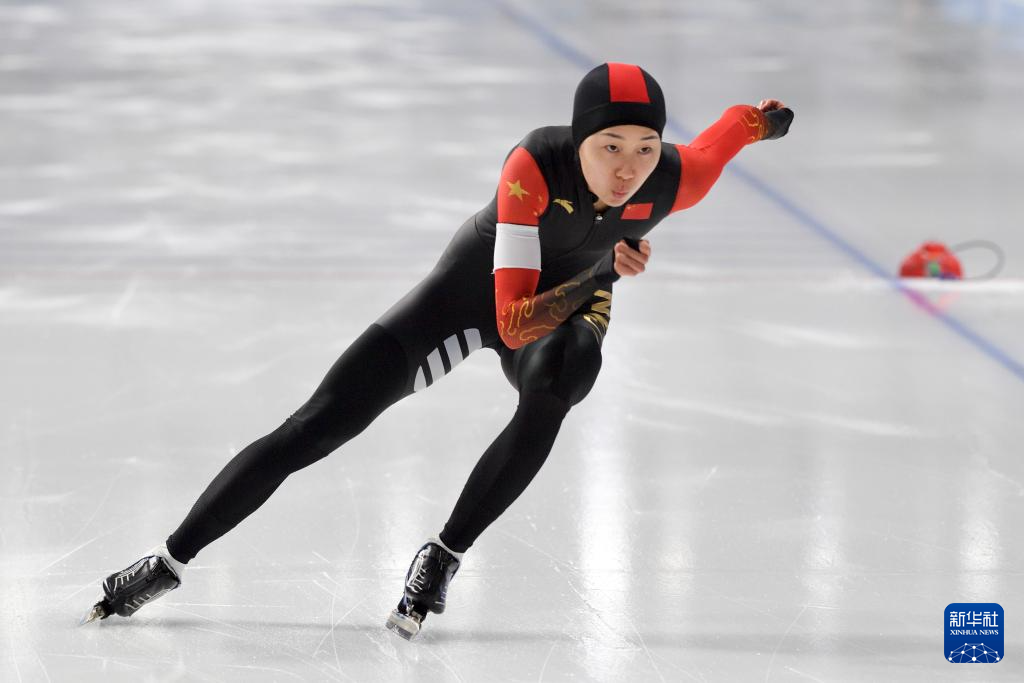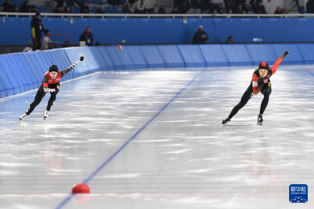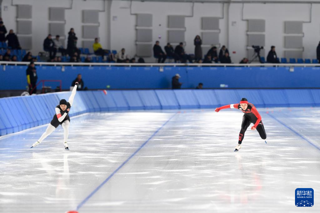 当日,2024-2025赛季中国杯速度滑冰精英联赛第四站暨亚冬会测试赛女子500米A组比赛在黑龙江省冰上训练中心举行。