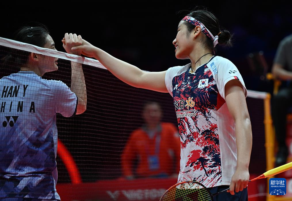 12月13日,韩悦(左)和安洗莹在比赛后互相致意。