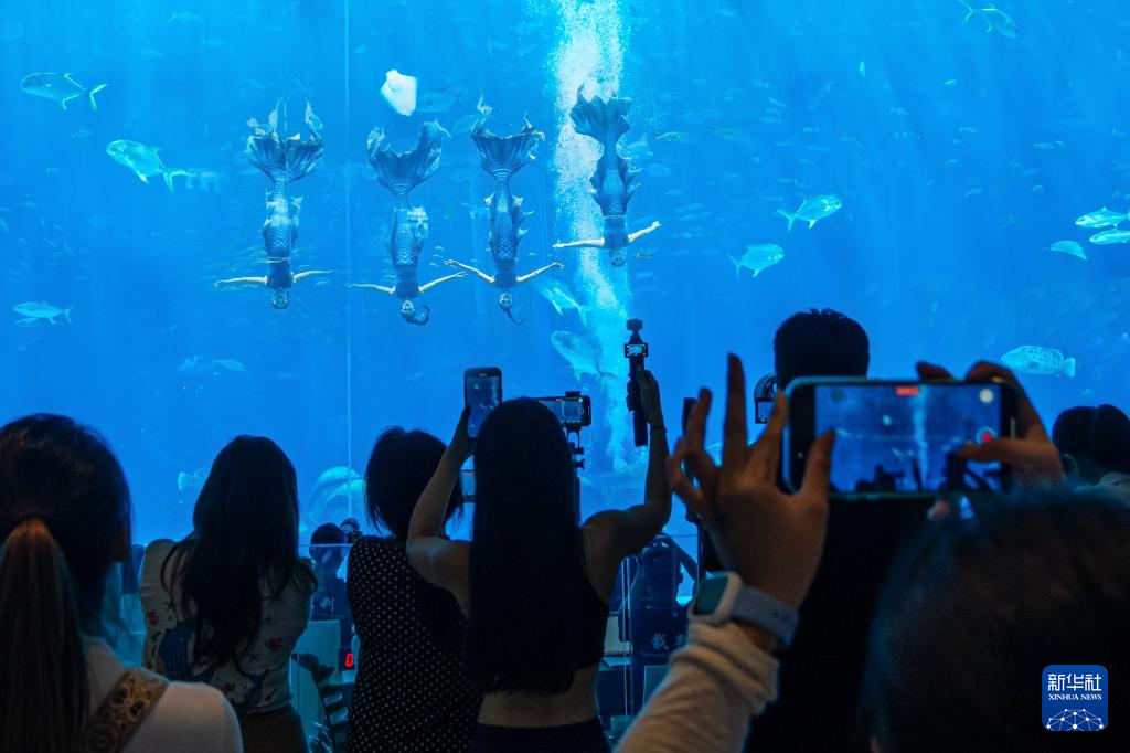 12月12日,观众在海南三亚亚特兰蒂斯观看2024年中国美人鱼公开赛年度总冠军赛暨亚洲杯赛。
