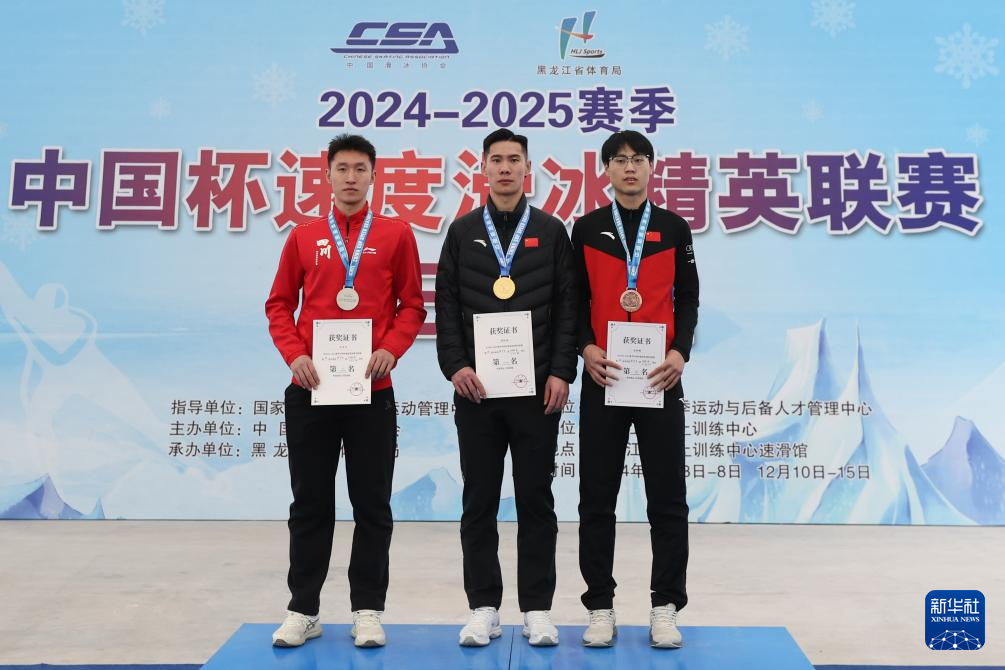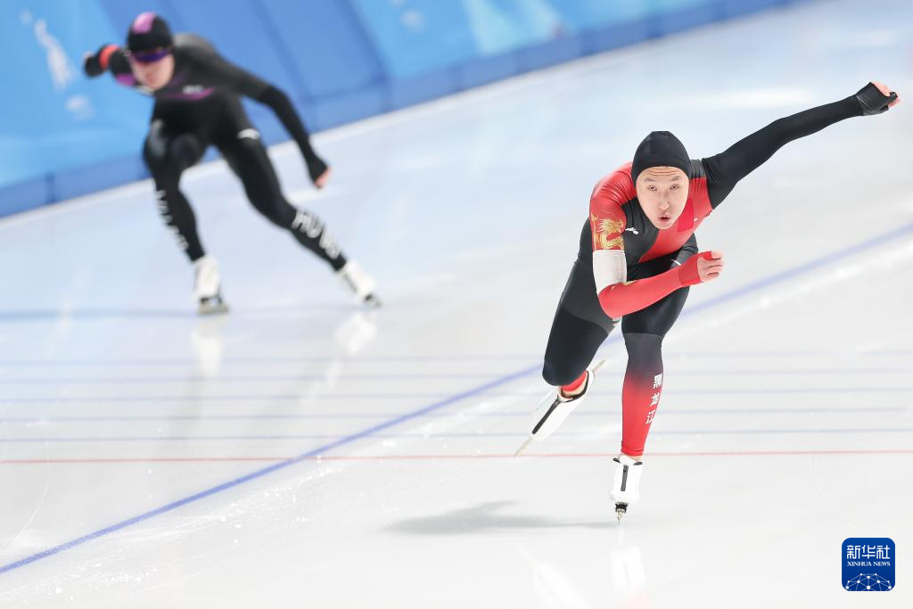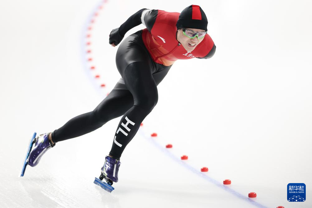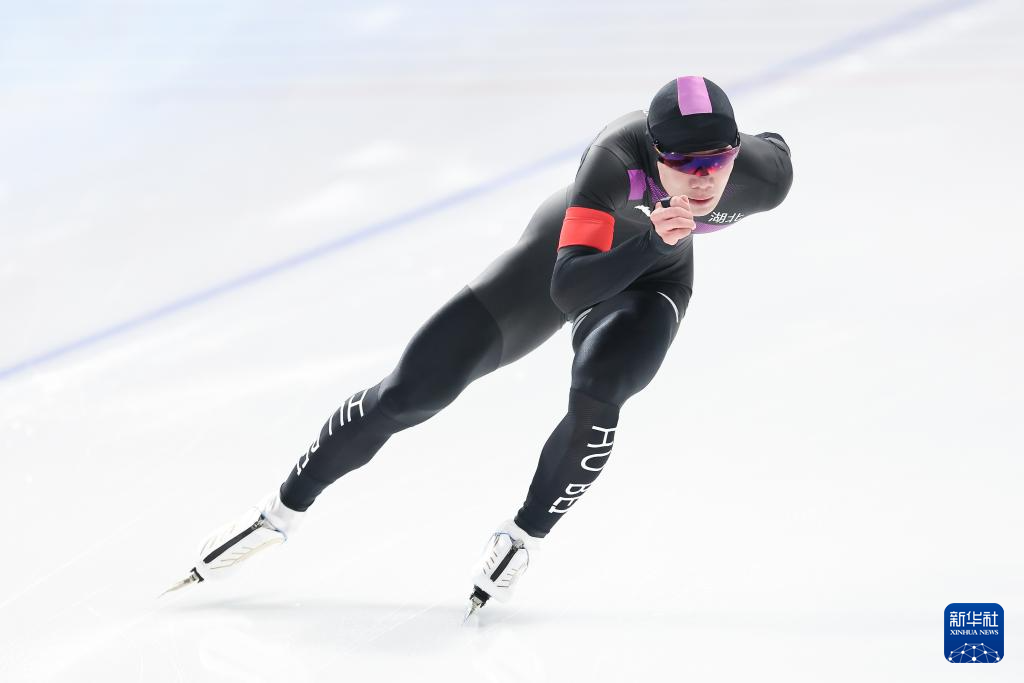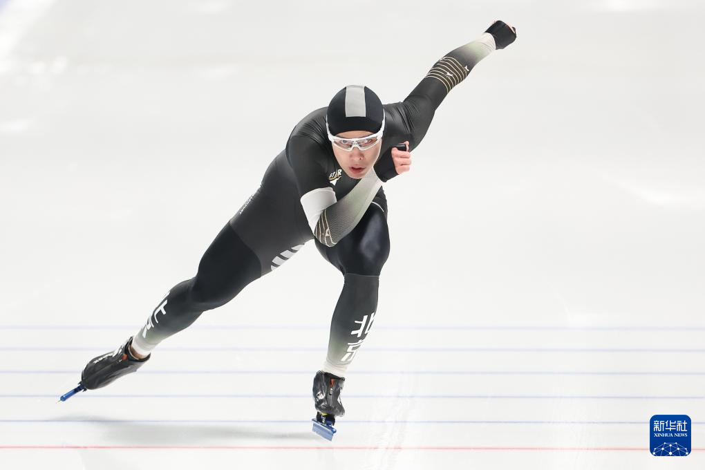 当日,2024-2025赛季中国杯速度滑冰精英联赛第四站暨亚冬会测试赛男子1000米A组比赛在黑龙江省冰上训练中心举行。