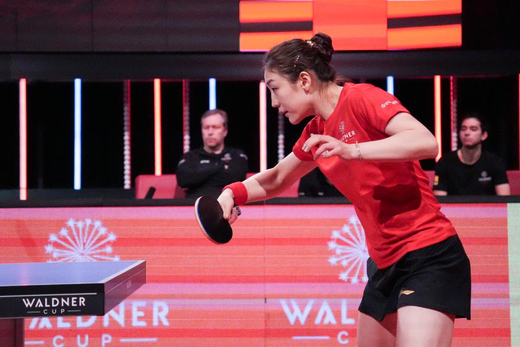 12月15日,中国选手陈梦在女单比赛中。新华社发(白云 摄)