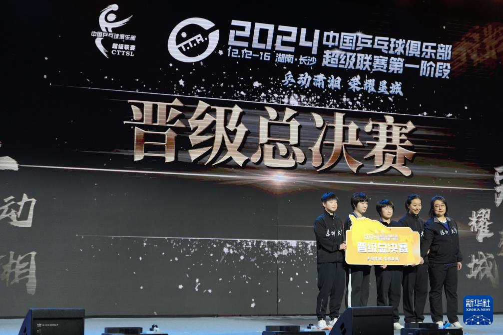 12月16日,深圳大学队选手在乒超联赛晋级仪式现场。她们成功晋级总决赛。